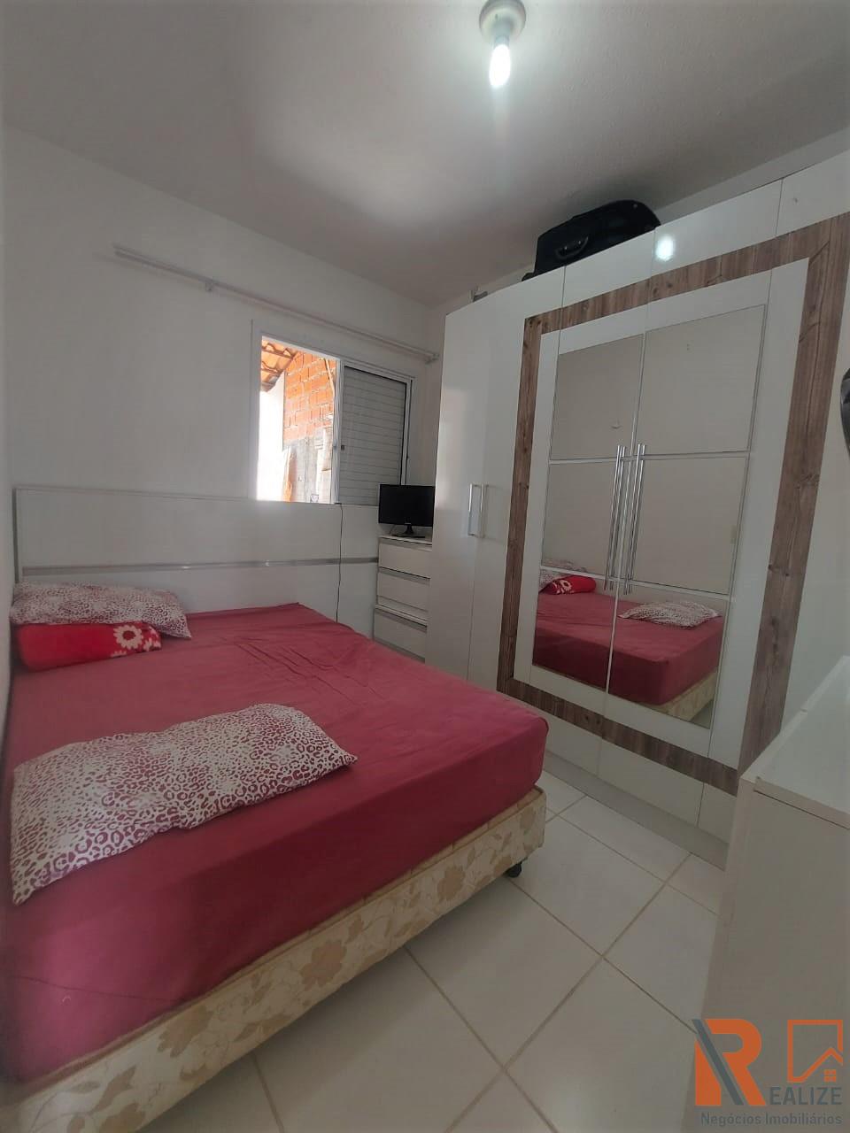 Casa à venda no condomínio Moradas Santa Maria, com 2 dormitórios, banheiro social, sala, cozinha, pátio nos fundos e garagem em frente à residência. O condomínio oferece portaria 24h, salão de festas, pracinha, campo de futebol e áreas verdes perfeitas para o lazer e convivência em família, em um ambiente tranquilo e seguro.
